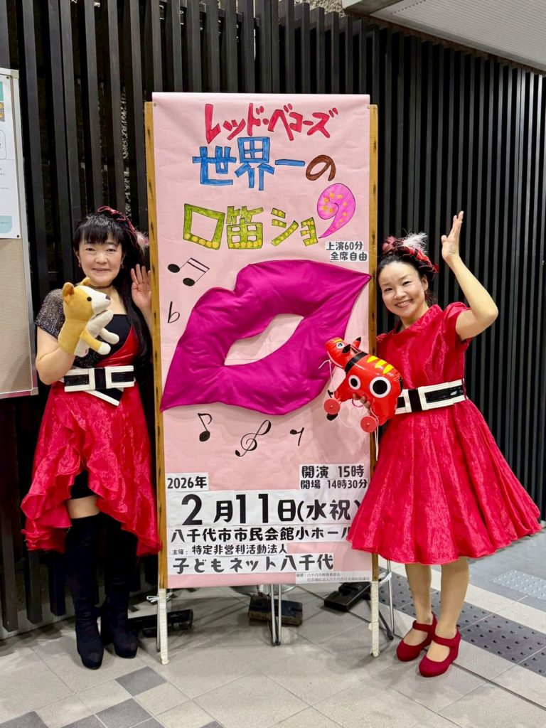 NEW! ブログ レッド・べコーズ「世界一の口笛ショー♪」報告 2026年2月11日(水祝) 八千代市市民会館小ホール レッド・ベコーズの八千代公演「世界一の口笛ショー♪」が無事に終了❗️ 赤ちゃんからお年寄りまでの方々が一緒に、口笛世界チャンピオンのマリリン(高木満理子)さんと、シンセサイザー奏者のカナピー(細川佳那枝)さんによる素敵なコンサートを楽し... 2026年3月8日