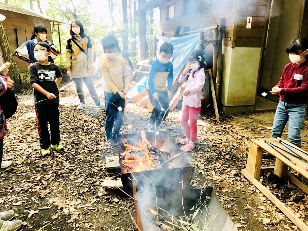 焚き火が消えないように枯れ葉を集めたり、マシュマロを枝にさして焼いたり、焚き火があれば、子ども達も、そしてお父さんたちも、ずっと遊んでいられるようです。