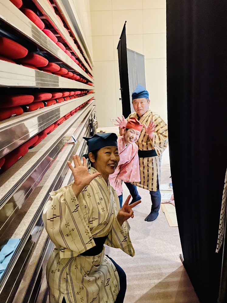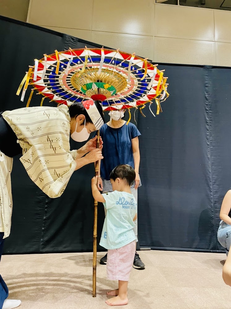 ■公演のあと、よっぽど楽しかったのか、警察の取り締まりのピーという笛の音のあと「ぴーひゃらどん」と道路でくるくるまわっていました。子どもの吸収力は無限大ですね。母としてはこんなにも「無病息災ぴーひゃらどん」が心に響く公演はなかったと思います。