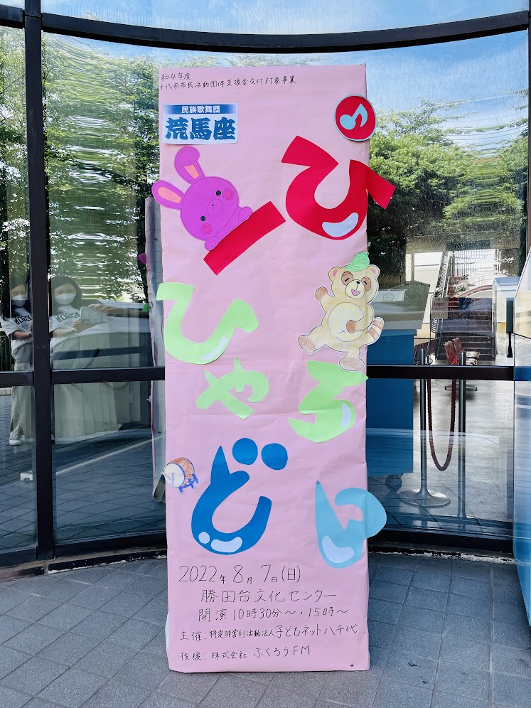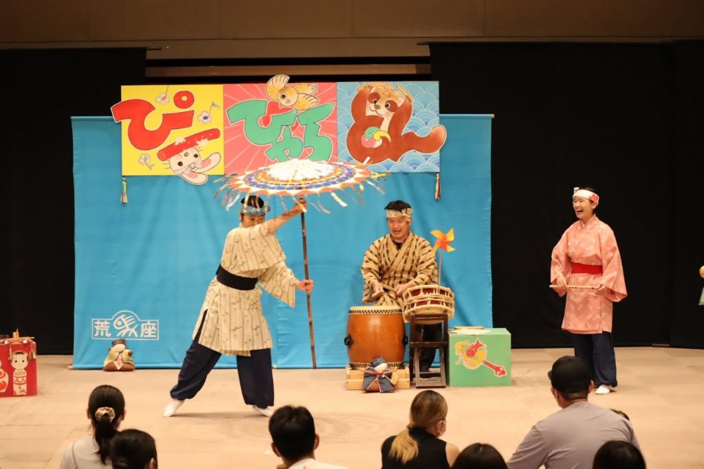 8月7日(日)、勝田台文化センターで民族歌舞団荒馬座さんによる「ぴーひゃらどん」を開催しました。0~3歳児親子向けのこの公演は、好評につき急遽、午前・午後の2ステージの開催となりました。令和4年度八千代市市民活動団体支援金交付対象事業です。