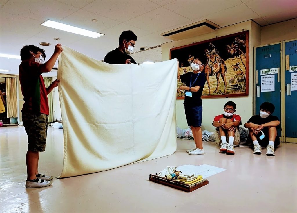 スノーケリングにキャンプファイヤーと盛りだくさんの一日。小学生たちは、疲れて早々に寝た子も多かったようですが、遅くまで起きてカードゲームをしていた子達もいました。