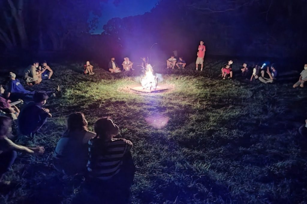 そして、陽が暮れ始めた頃に、キャンプファイヤーがスタート。実行委員が作り上げたストーリー仕立てのパフォーマンスは最高!火が着いて、ダンスが始まり、カッコ良く踊る中高校生達を見ながら、小学生の子どもたちも火の周りで踊っていました。最後はみんなで「12月」を歌いながら手を繋いで、グルグルと走り周り、火が小さくなる頃には辺りは真っ暗。見上げれば、とても素敵な星空でした。