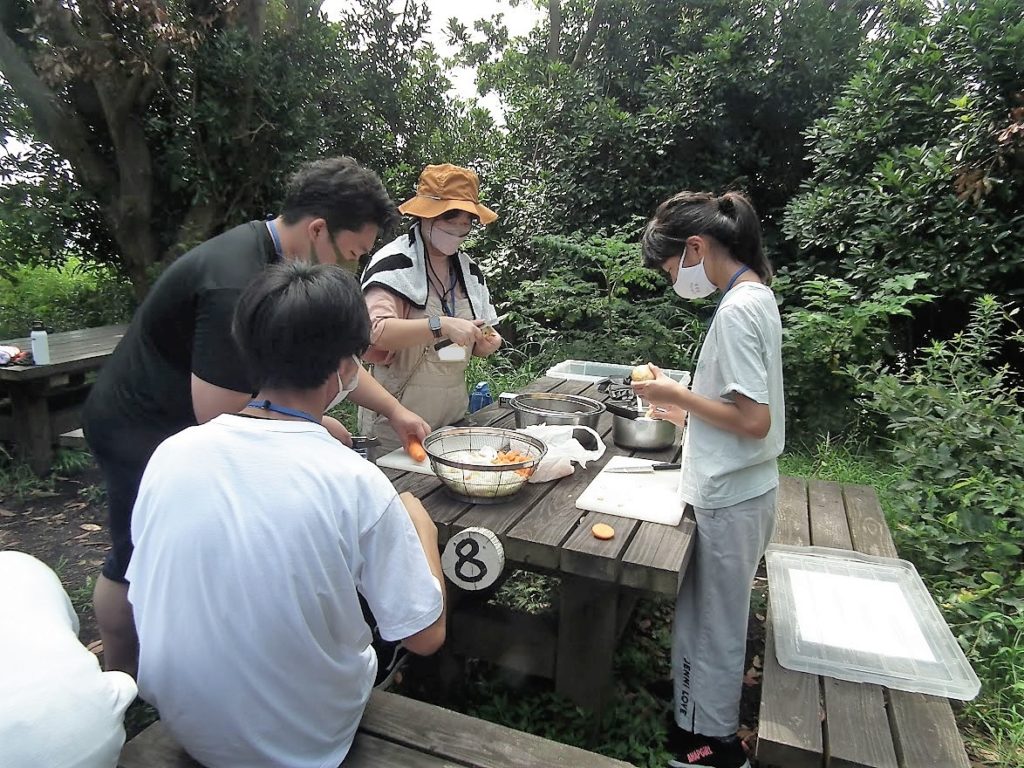 野菜を切ったり、薪を割ったり、火起こしをしたり、洗い物をしたり・・・と、上手に役割り分担をしていました。もちろん、大人班も1鍋作りました。青空の下でみんなで食べるカレーは、とても美味しくて、おかわりする子も多く、あっという間に完食しました。デザートのゼリーやアイスも美味しかった!