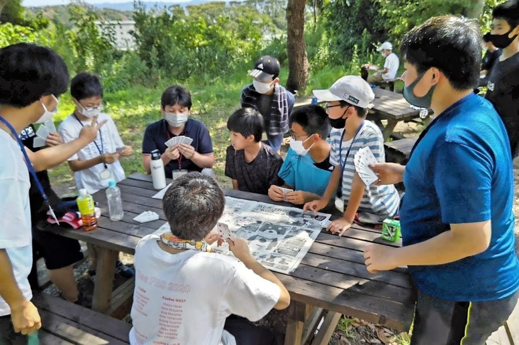 それから、全員参加のトランプの「大富豪」大会。まず、予選をして、大富豪、富豪、平民、貧民、大貧民のグループに分けて、決戦は、各グループの中で行い、大富豪の中の大富豪と、大貧民の中の大貧民が決まりました。複雑な独自ルールには、大人スタッフもアタフタしながら、子どもたちにルールを教えて貰いながら参加し、楽しんでいました。