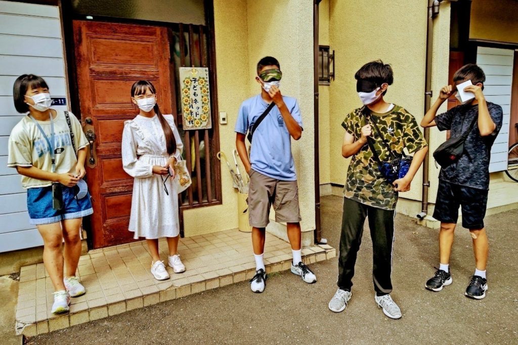 女子グループと男子グループに分かれ、アイマスクをつけて、千葉市方面と船橋市方面へいざ出発🚗