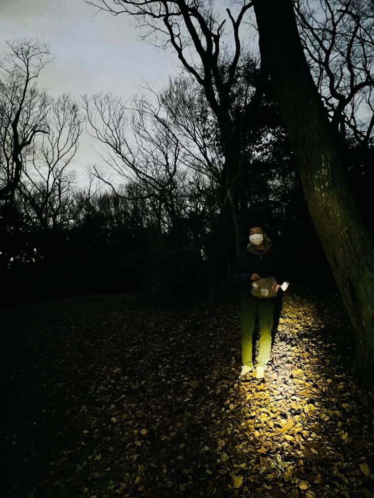 2~3人の3グループにわかれて、真っ暗な森に入っていきます。