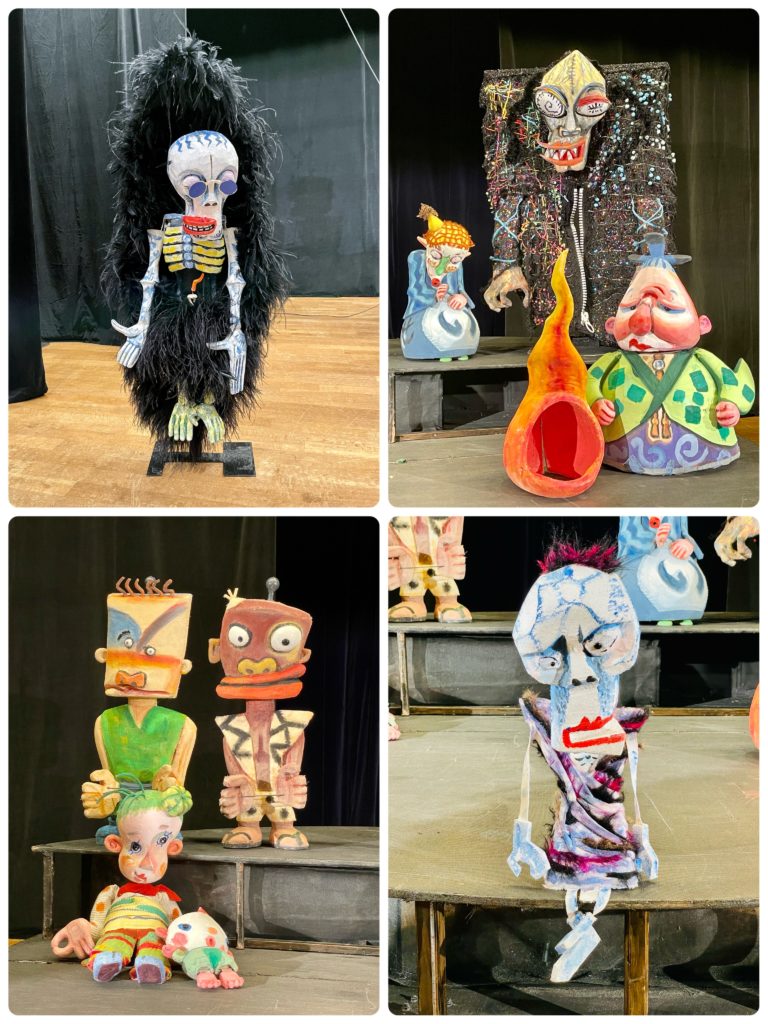 - たくさんの人形は超個性的でそれだけで笑える。こわいテーマだからこそ、この人形がいびつだったりと納得しました。