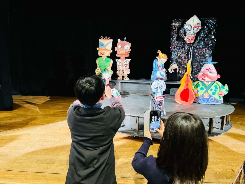 終演後は、舞台に人形たちが飾られ、間近で見ることができました。子どもも大人も興味津々!じっくり拝見。