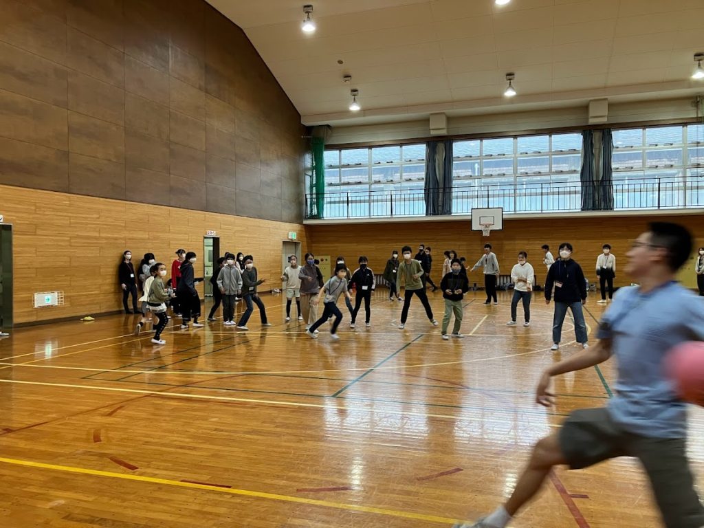 試合時間は10分。中学生以上は利き手ではないほうの手でボールを投げないといけません。ラスト1分で、利き手を使って投げていい、となるまで思うように投げられない中学生たち。1試合目はラスト1分を待たずに全員当てられてしまい、終了。2試合目をどうするか?小学生実行委員メンバー考えて、2試合目は、小学生プラス専門学生のK君21人 VS 利き手を使ってはいけない中学・高校生10人 で楽しみました。