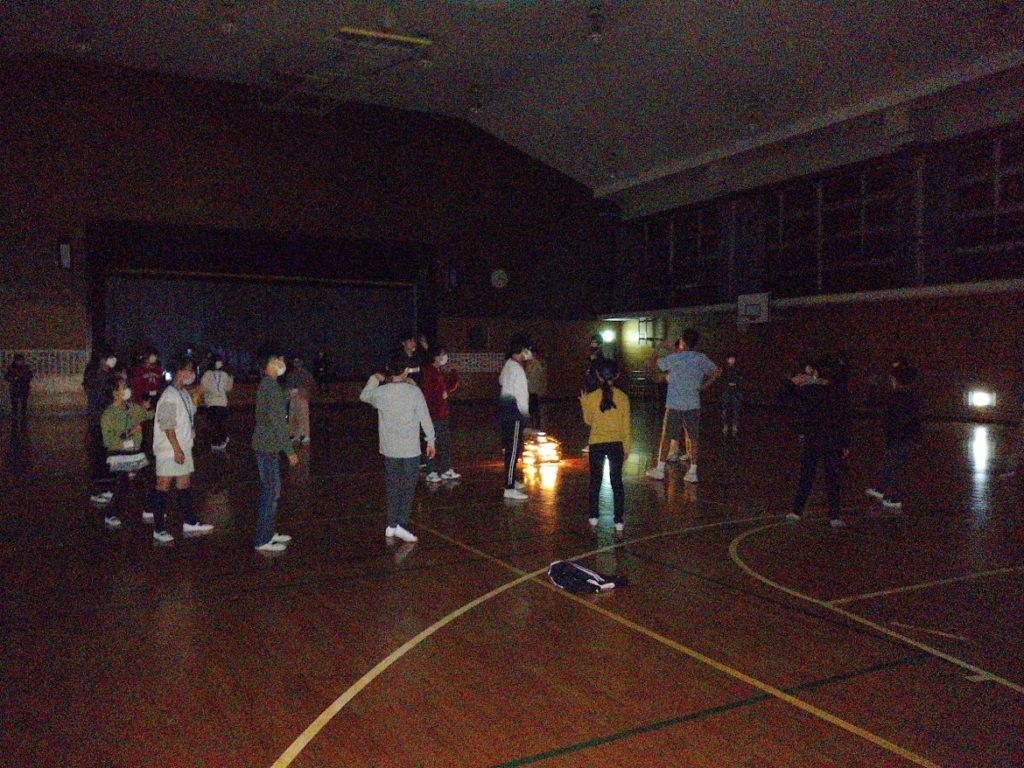 思いっきりダンスをしたい中学生で、夜のキャンプファイヤーを担当。雨で体育館での開催となってしまいましたが、懐中電灯・ランタン・薪を使って、ファイヤーのようなものを作って雰囲気を出しました。