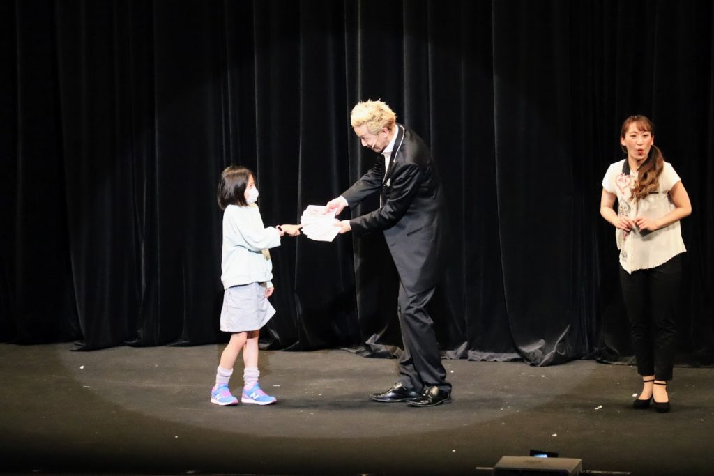子どもネット八千代では、主演のたかお晃市さんをお招きし、2回の事前マジックワークショップ&交流会や、イオンモール八千代緑が丘でのマジックショーのお手伝いなどで、この公演をとっても楽しみにしてきました♪
