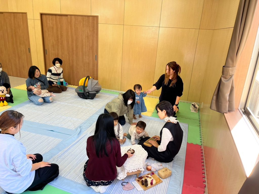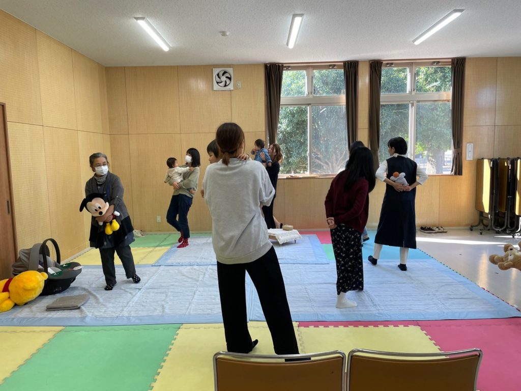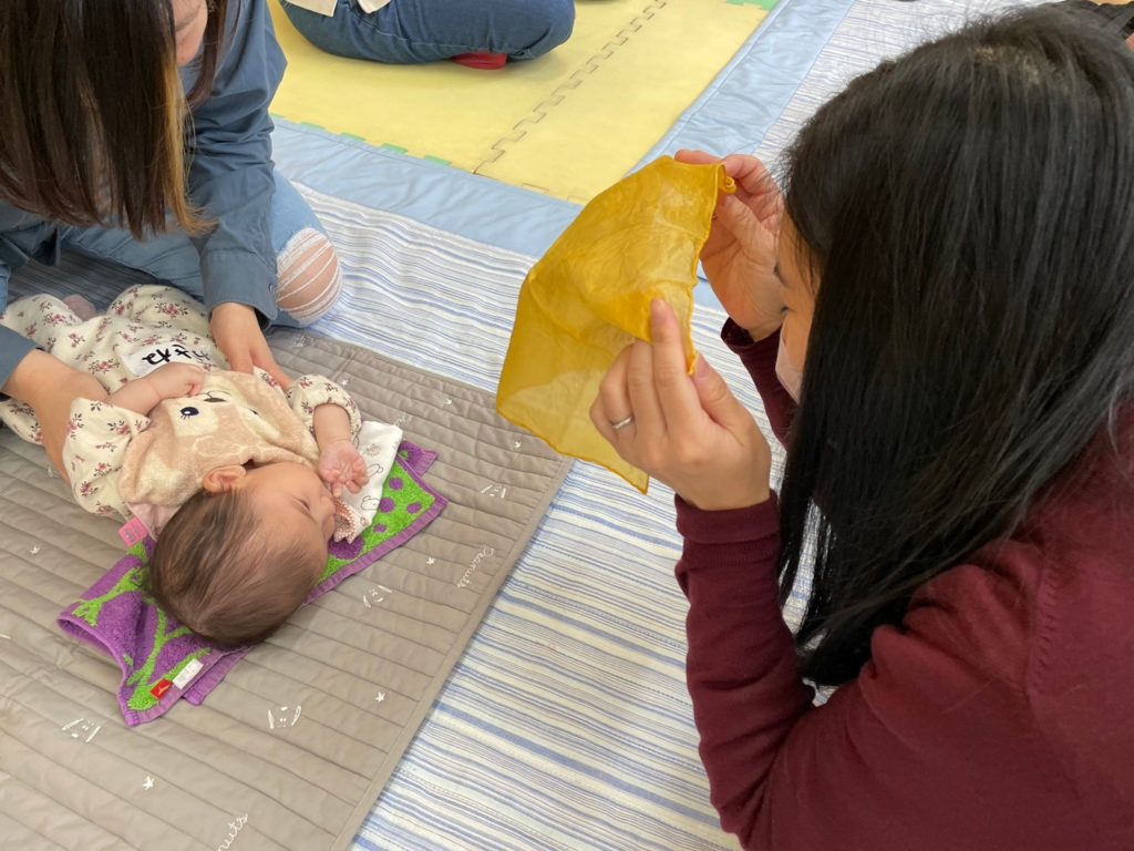 ねんねの赤ちゃんから歩き始めたお子さんまで4組の親子が参加してくれました。