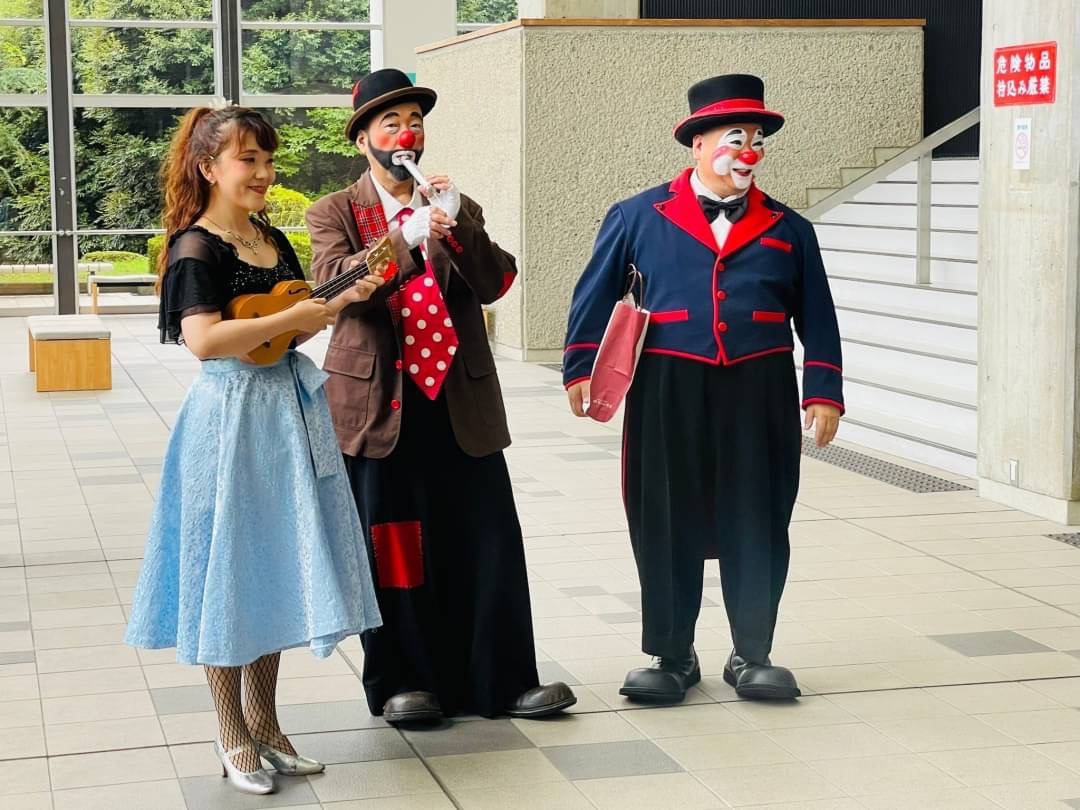 開演前のホワイエでは、クラウンのびり&ブッチィーと王子なっちゃんが来場者を楽しませていました。
