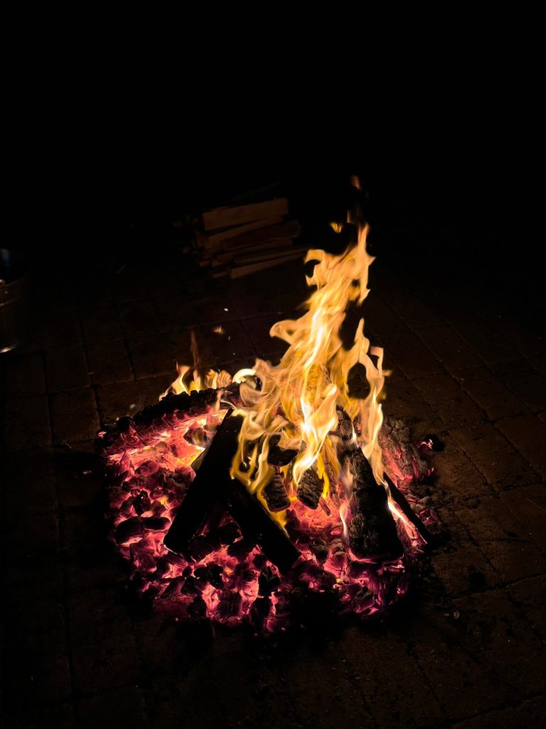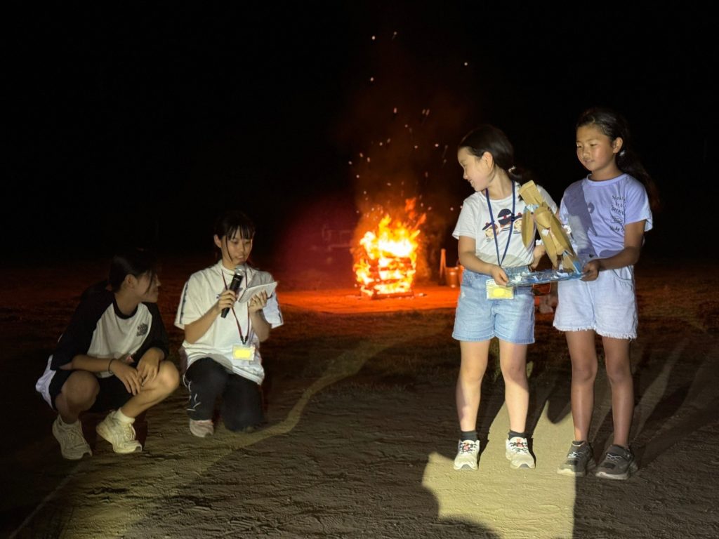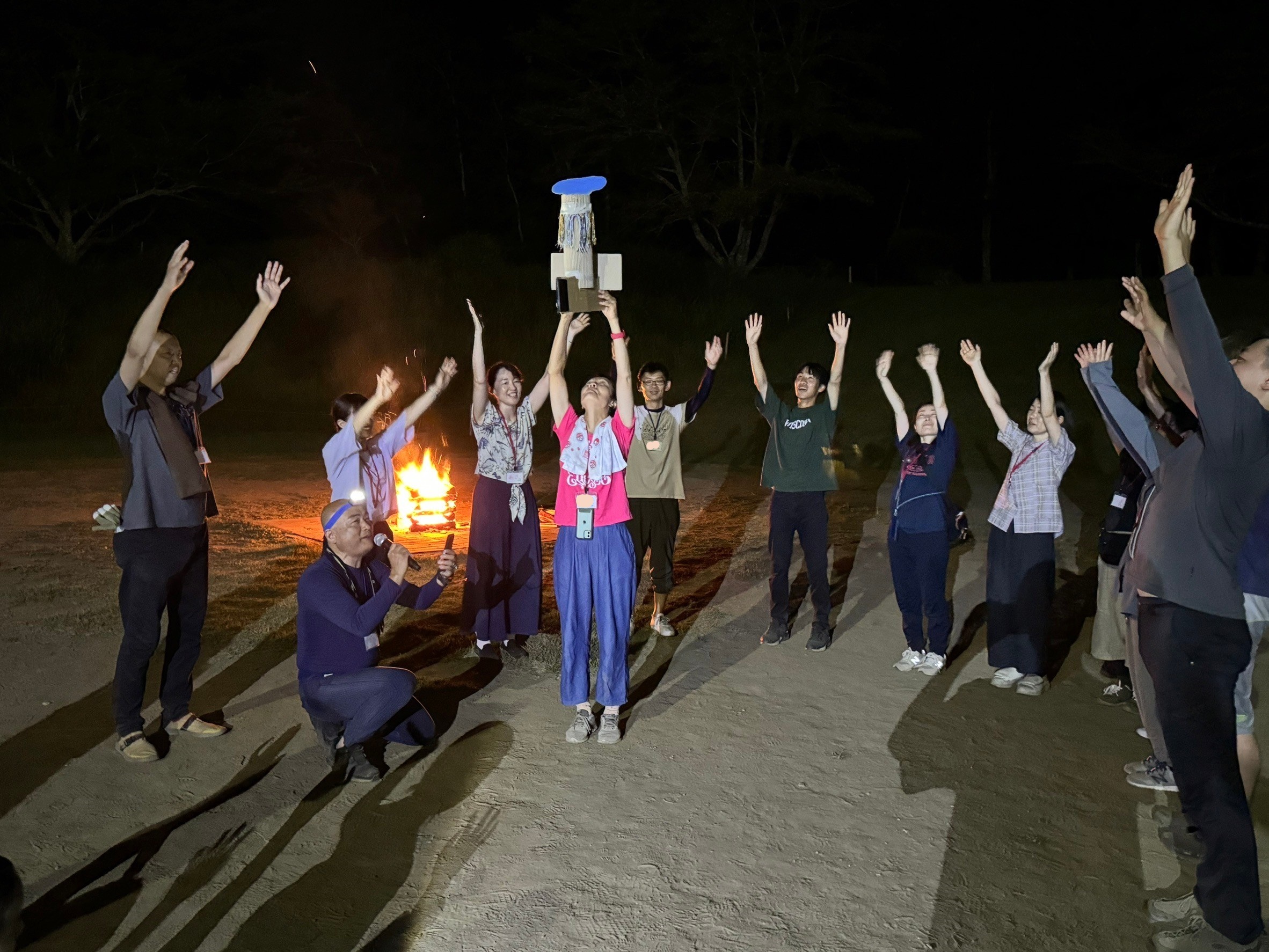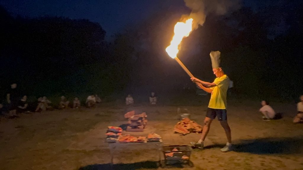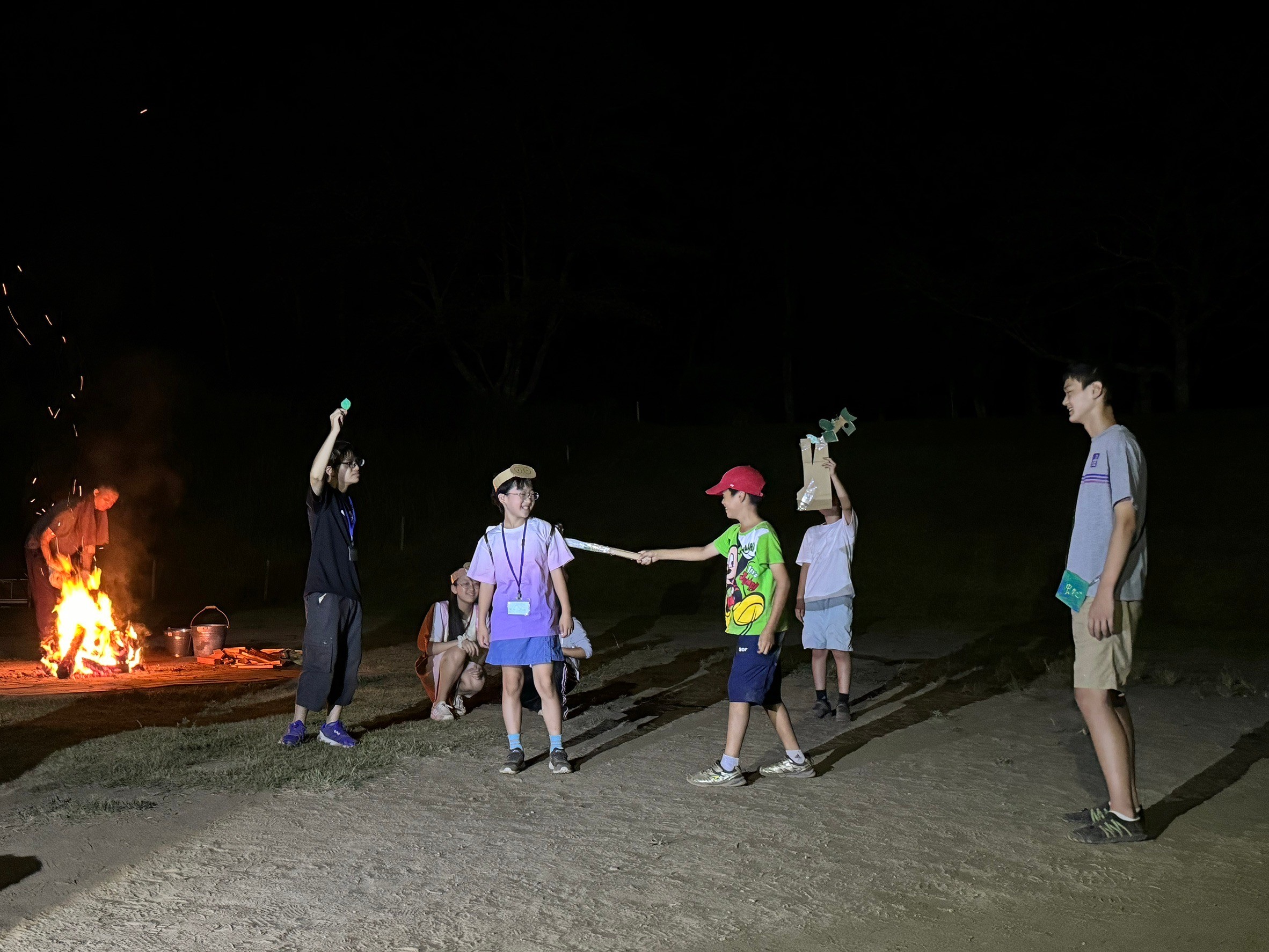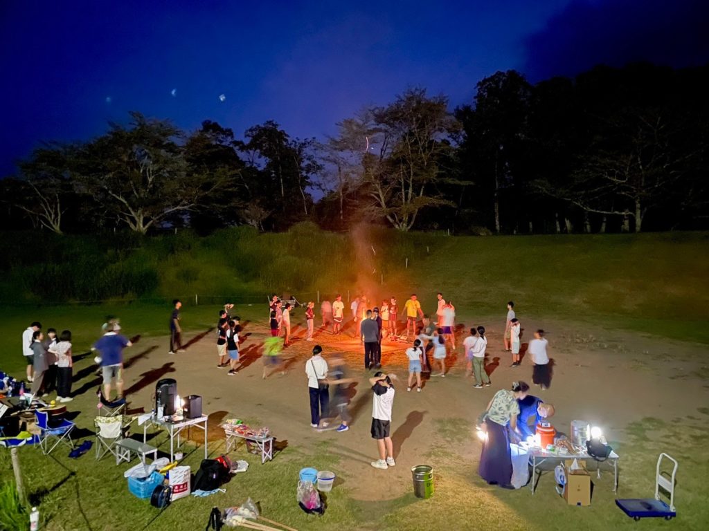 夕食のあとは、「焚き火の集い」(キャンプファイヤー)