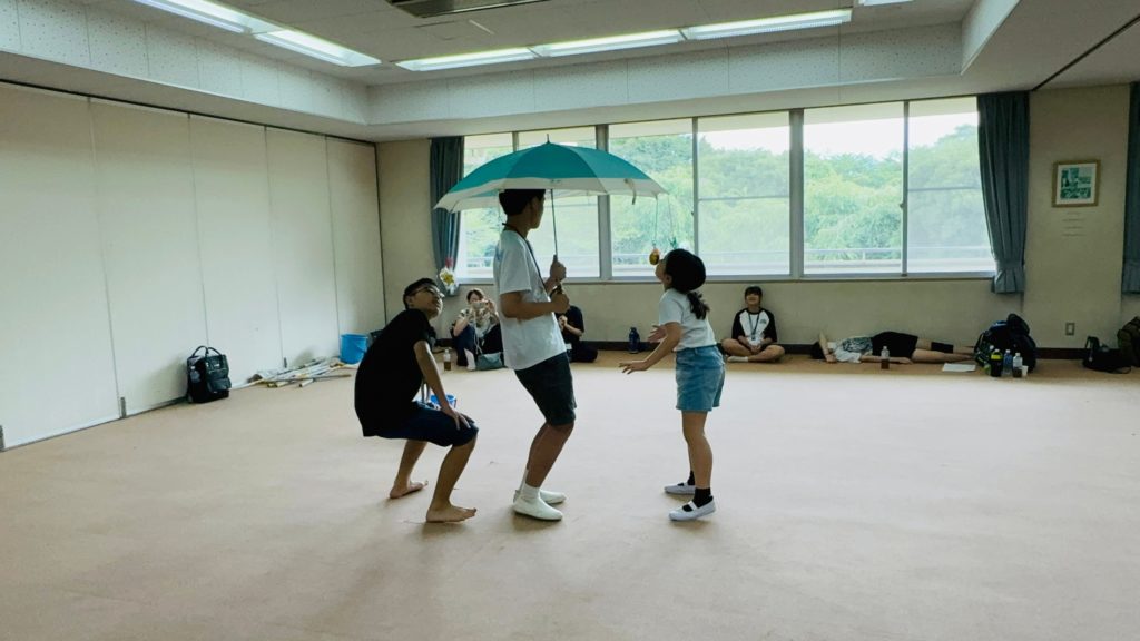 事前の交流会の時に練習したダンスで盛り上がり、何曲か踊ったあとは「劇…2年間鳴いたセミ」。