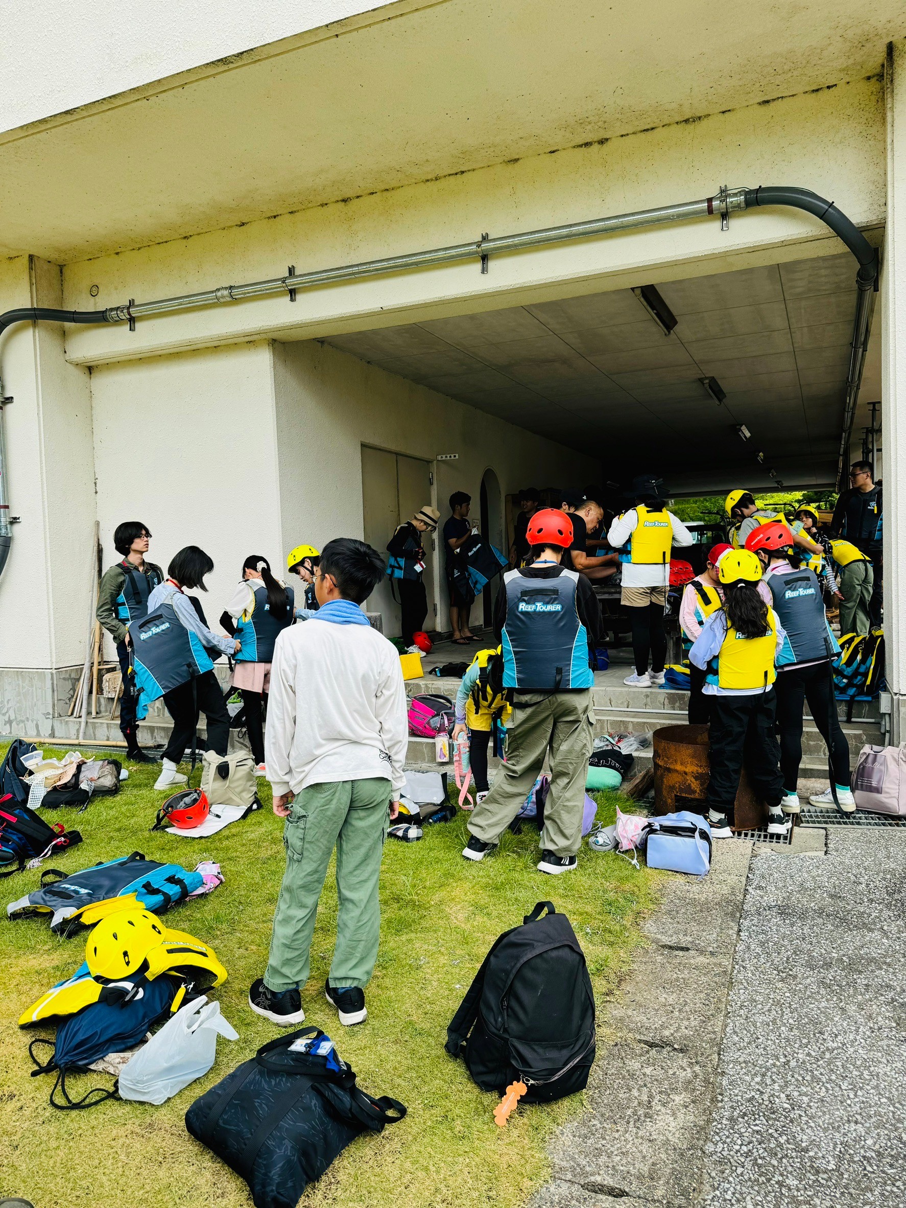 ライフジャケットを借りて、バスと徒歩で川まで移動です。
