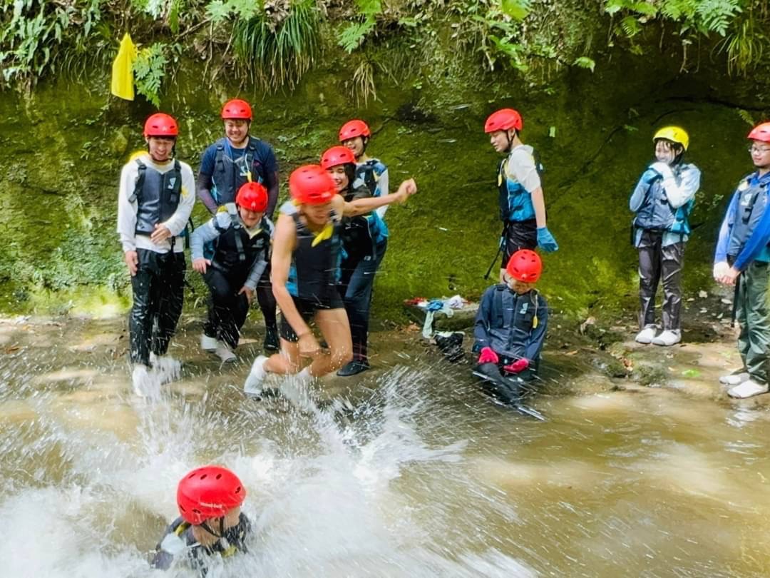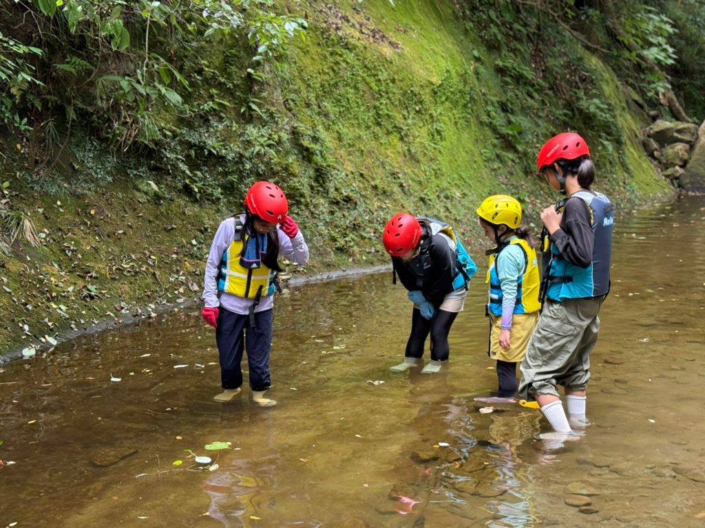 自然の家のスタッフのレクチャーを受けた後、大人スタッフの見守りのなか、バディと2人1組になって川探検。