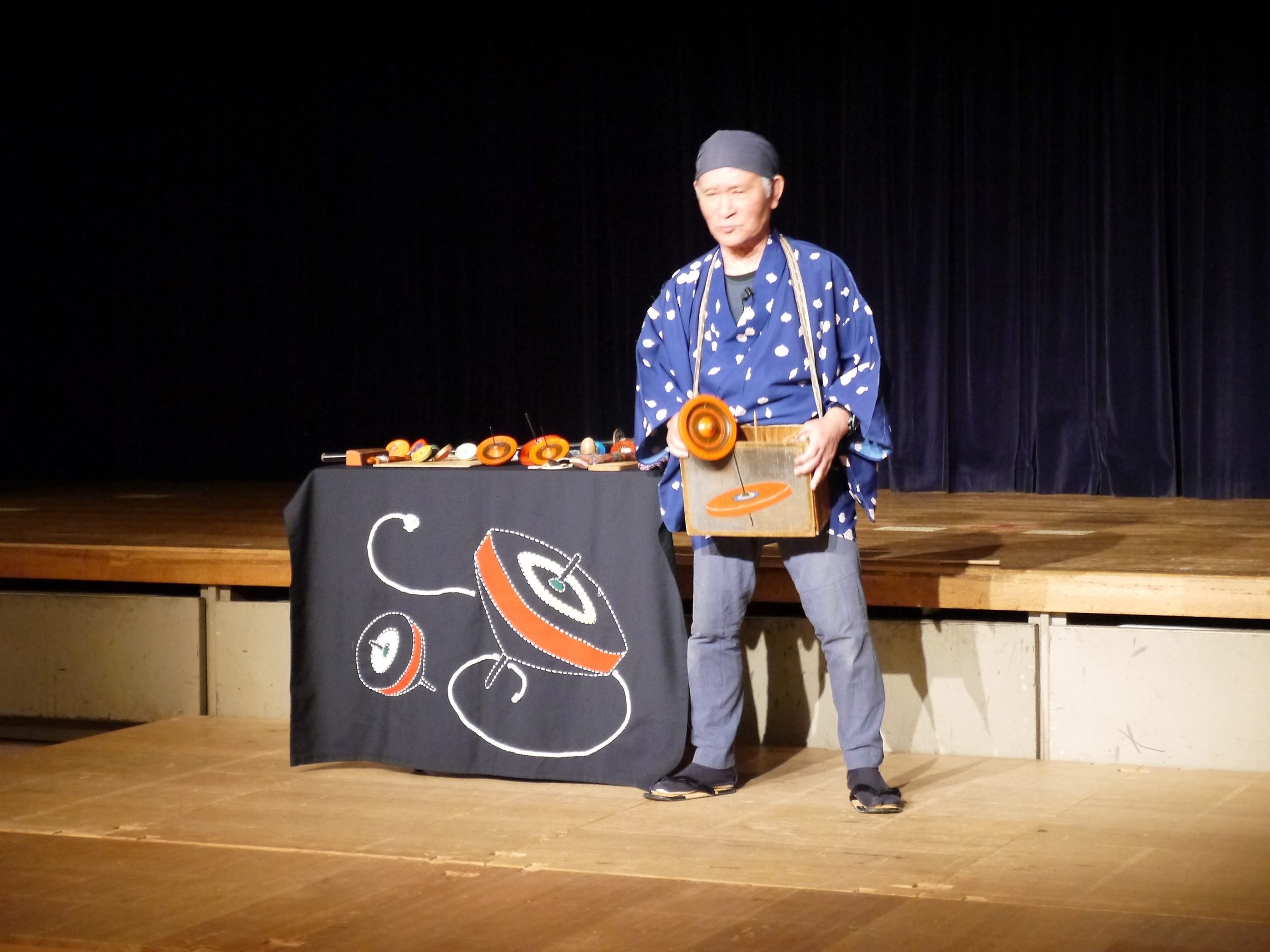 講師:藤田由仁(独楽名人・名古屋にある二万点の独楽を収蔵する日本独楽博物館館長。日本こままわし協会会長。「こまのおっちゃん」として全国を巡演している。)