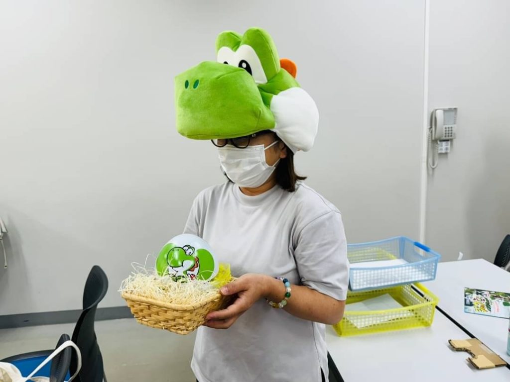 今年は、今月鑑賞する人形劇団ひとみ座「9月0日大冒険」にちなみ、恐竜さんが運んできた卵から発表されました!