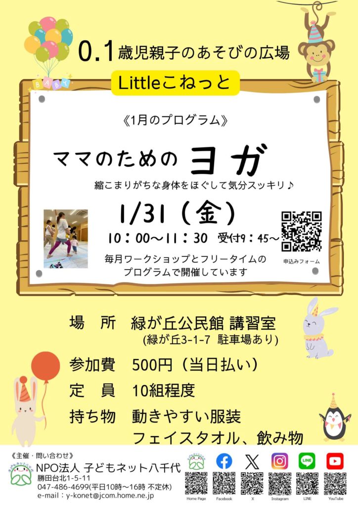 1月のプログラム「ママのためのヨガ」