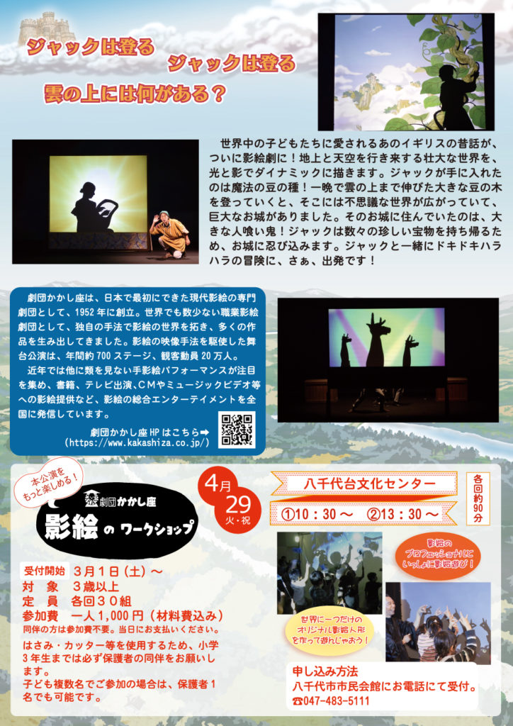 ※子どもネット八千代では広報等に使用する目的で、活動中にスタッフが写真撮影を行い、撮影した写真や映像、制作物、感想文等の著作物を、報告書や刊行物、SNSを含むインターネット等に掲載(講師や劇団など創造団体含む)することがありますので、予めご了承ください。
