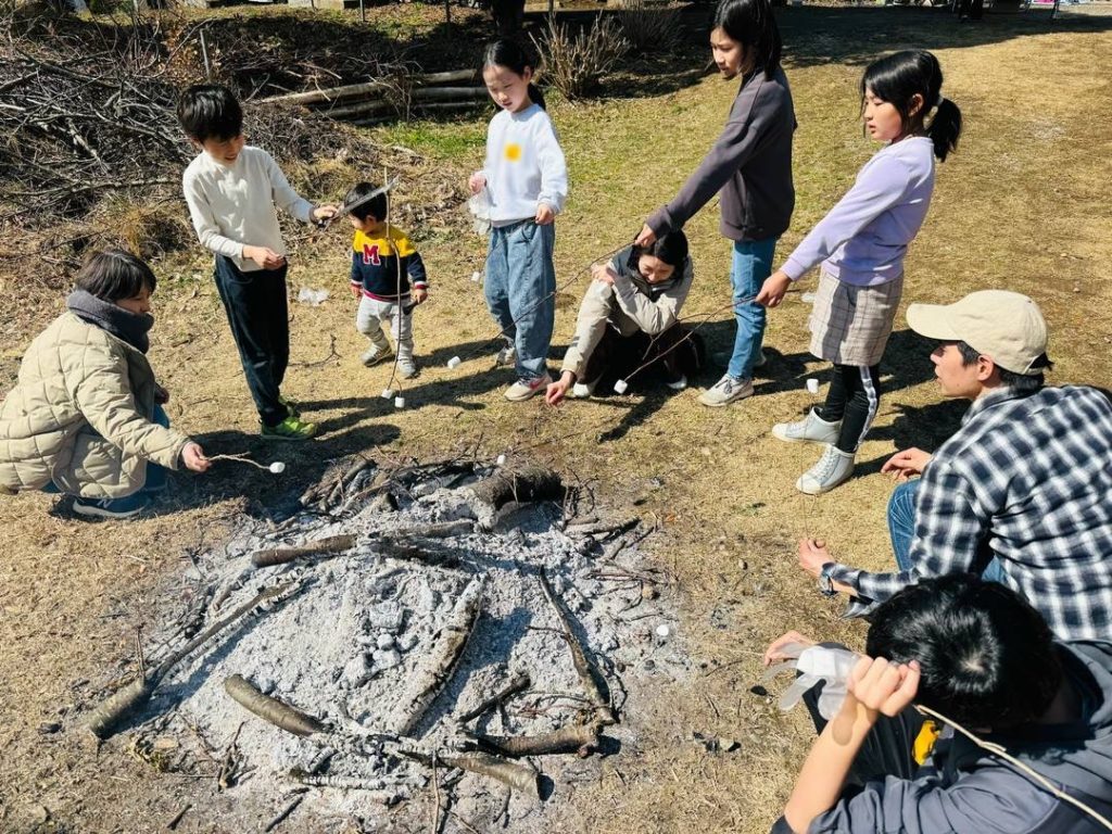 お腹がいっぱいになった後はお待ちかねのデザートです!焚き火の炭でマシュマロを焼いて、まる焦げにしたり・・・(笑)