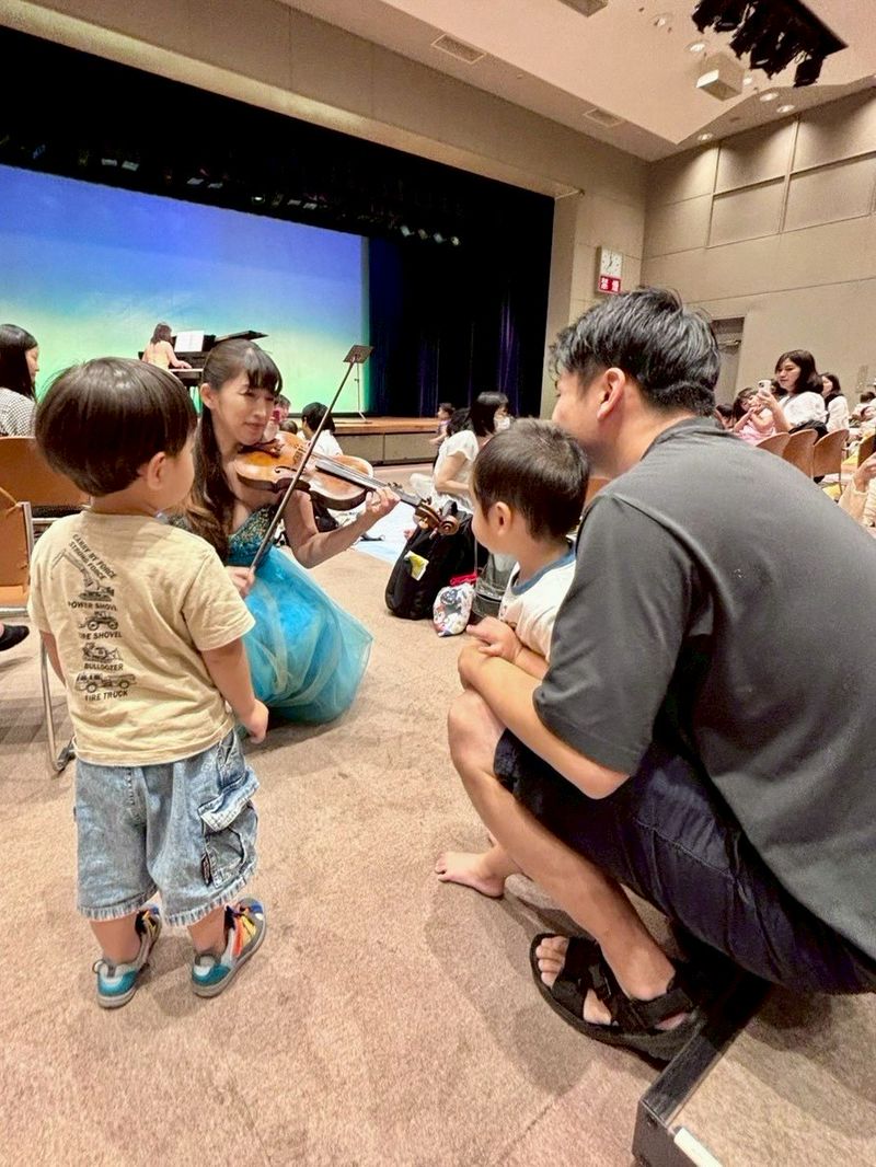 • クラシックから童謡まで、子どもも大人も楽しめる内容でとても楽しかったです。2歳娘は特に童謡で体を揺らしたり、口ずさんだり楽しんでいました。バイオリンの方が近くに来てくださり生の演奏をこんなに近くで体験できることがとても嬉しかったです。