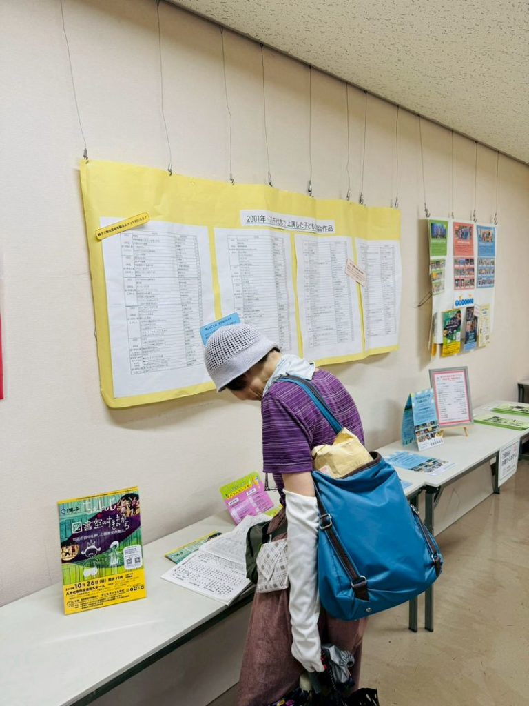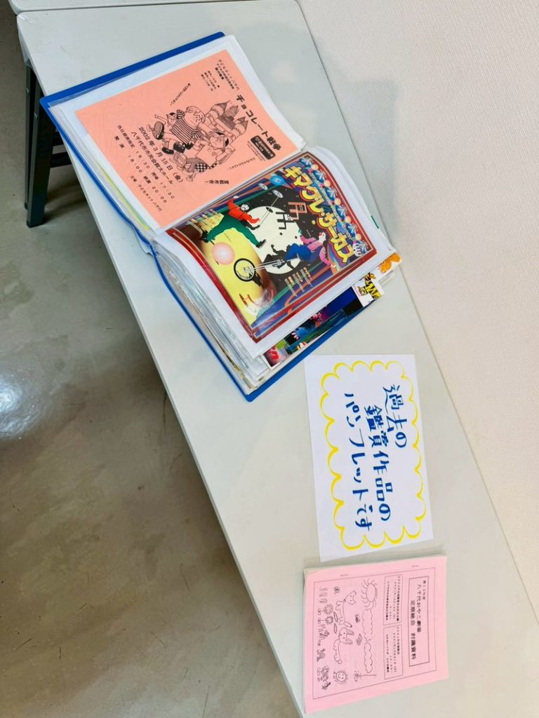 子どもネット八千代会員が立ち寄ってくれて、今までの鑑賞作品一覧や作品パンフレットを眺めながらおしゃべり🎵