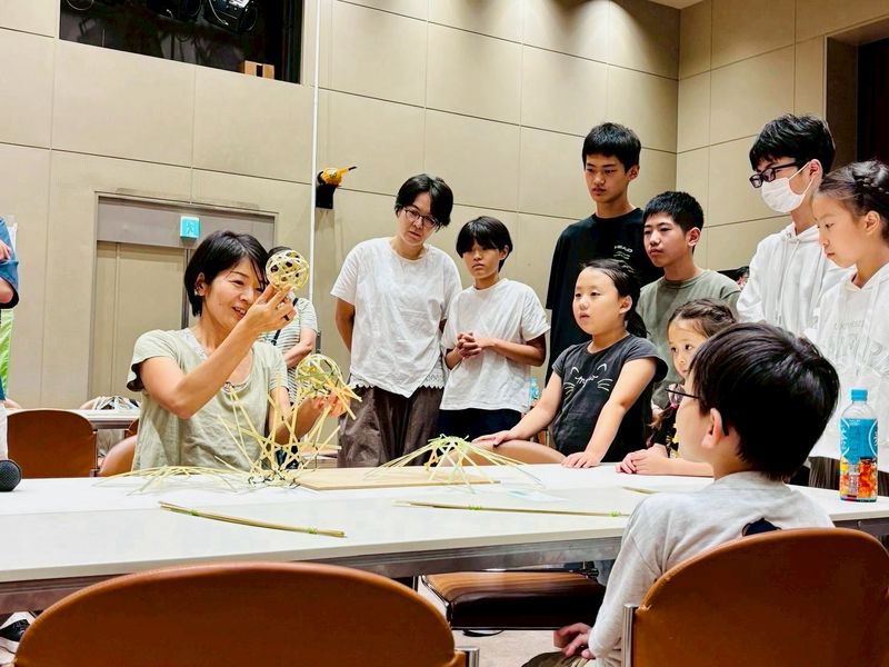 午後のプログラム「子どものアトリエ 竹細工体験」では、講師に「タケタテカケタ」から黒田さんをお招きして、竹のボール作りを体験しました。