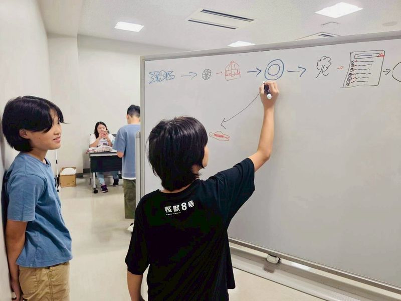 しばらくすると、ホワイトボードで絵しりとりを始める子が現れ、つられてみんなもそちらへ大移動🤣