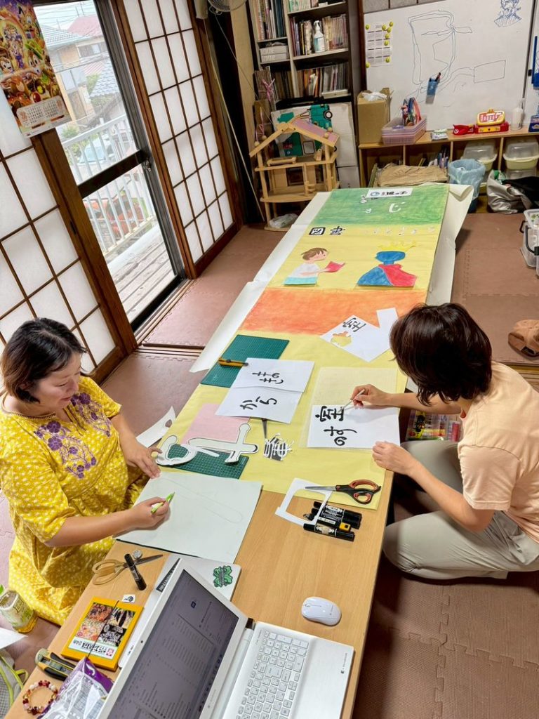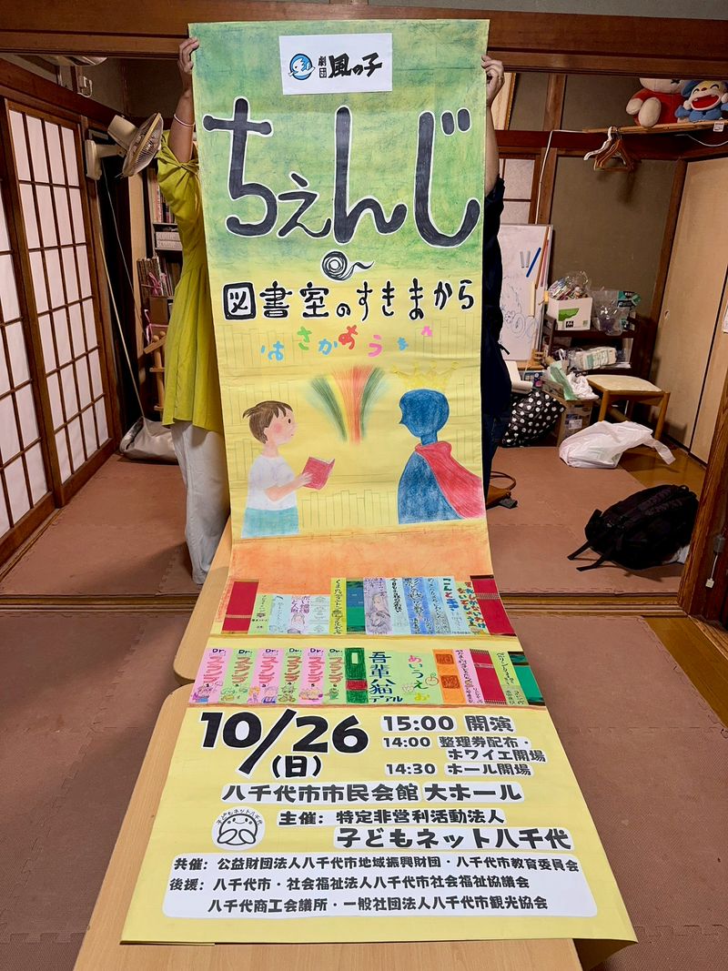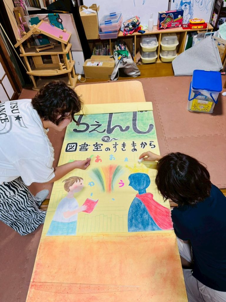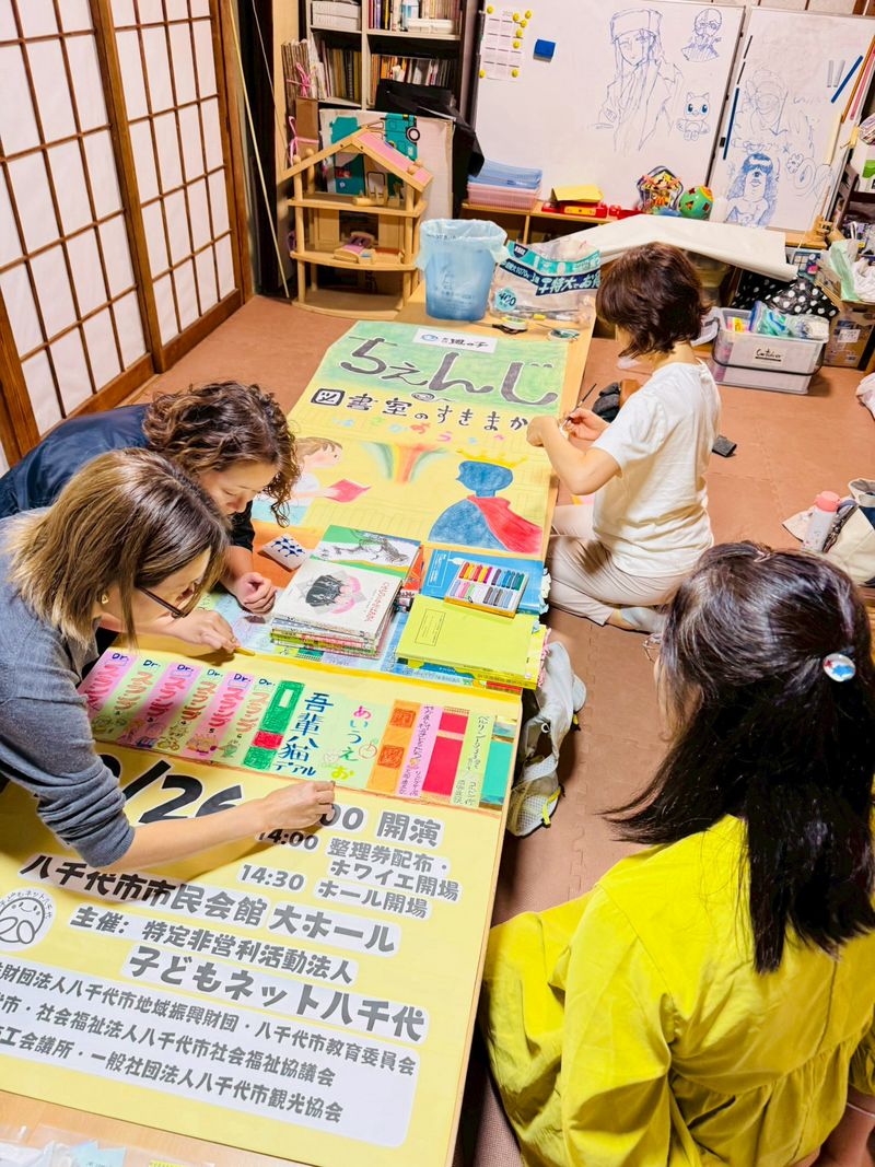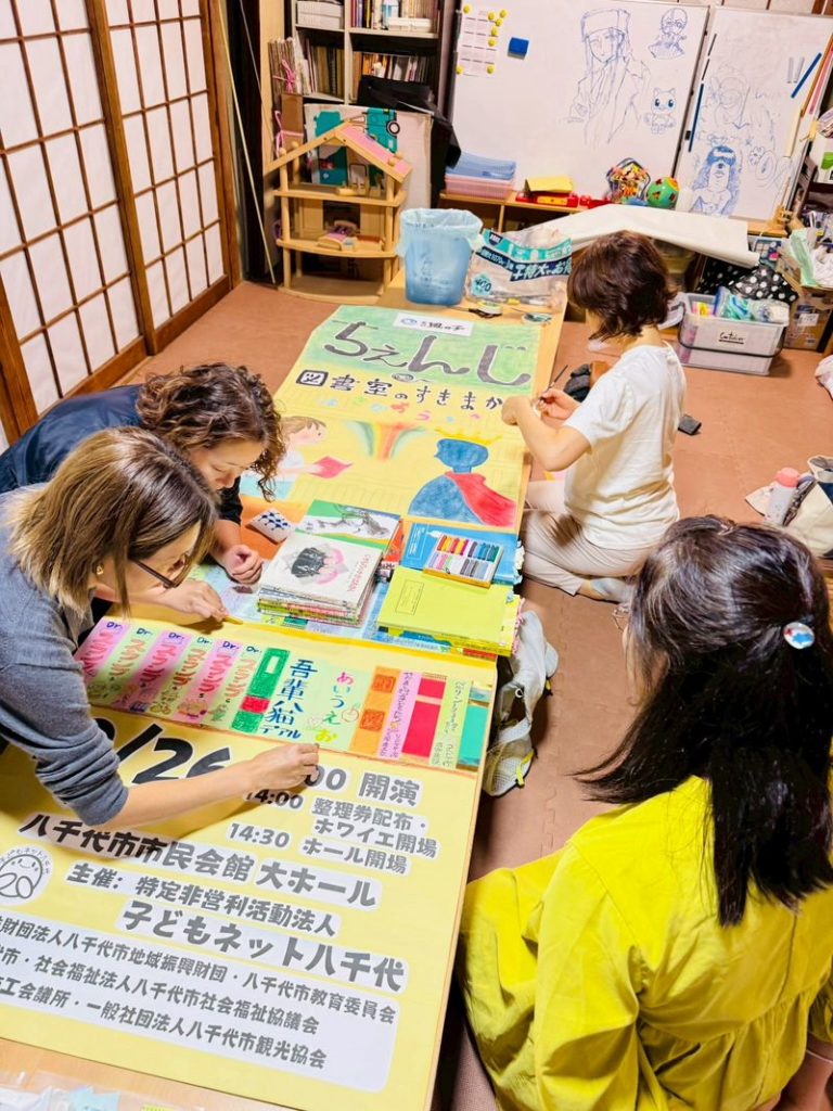 子どもネット八千代の鑑賞会では、年に1回ほど、サークルごとにスタッフ当番があります。「ちぇんじ・図書室のすきまから」の看板制作担当はスワンサークル。
