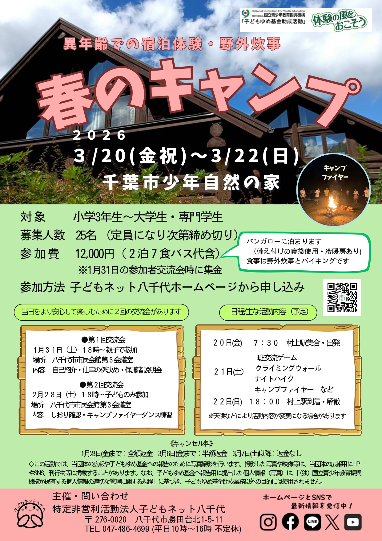 2026年3月20日(金祝)〜22日(日) 千葉市少年自然の家 <子どもゆめ基金助成活動>
