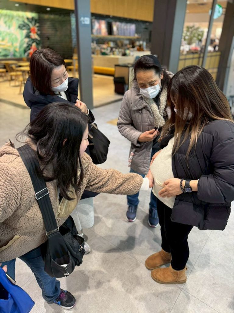 おばちゃん達で取り囲んで話を聞くと、なんと娘ちゃんは来週出産予定だそう🤰
