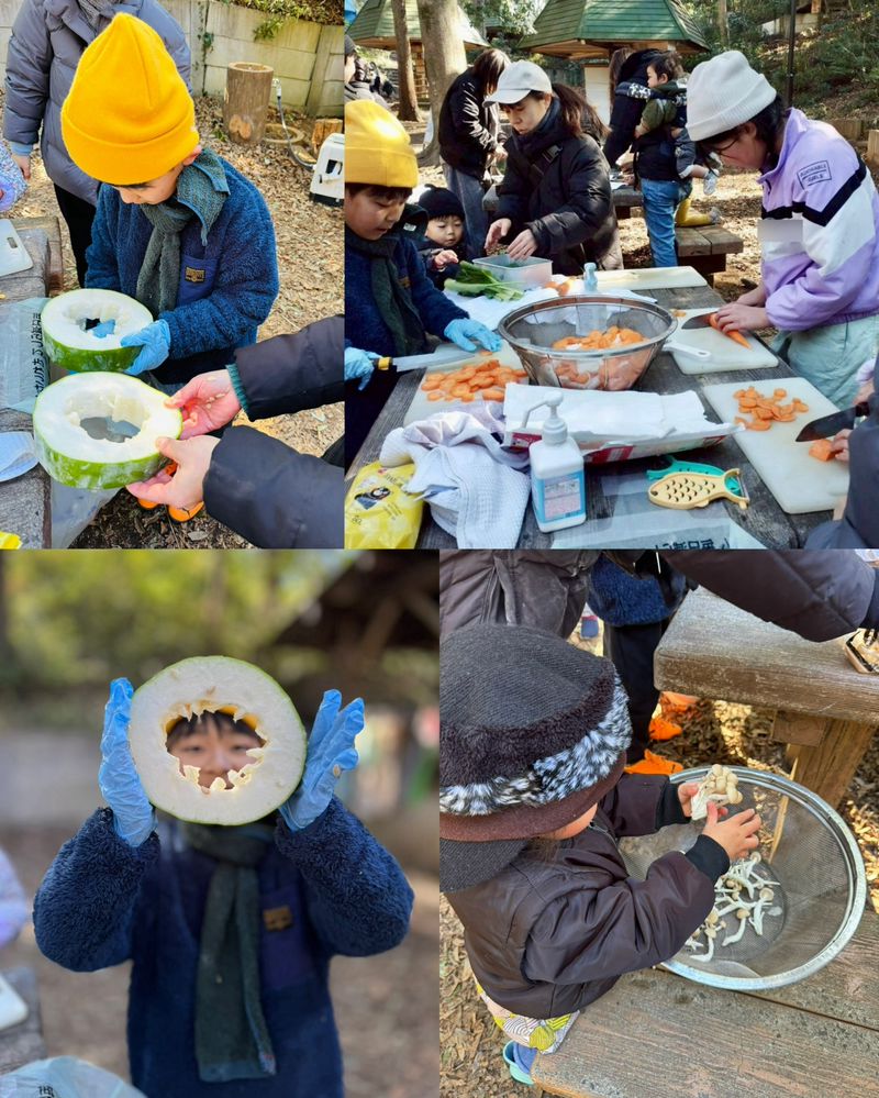 一人ずつ自己紹介のオープニング後、あそび隊・焼き芋隊・お鍋隊に分かれて、さあ始めよう❗️