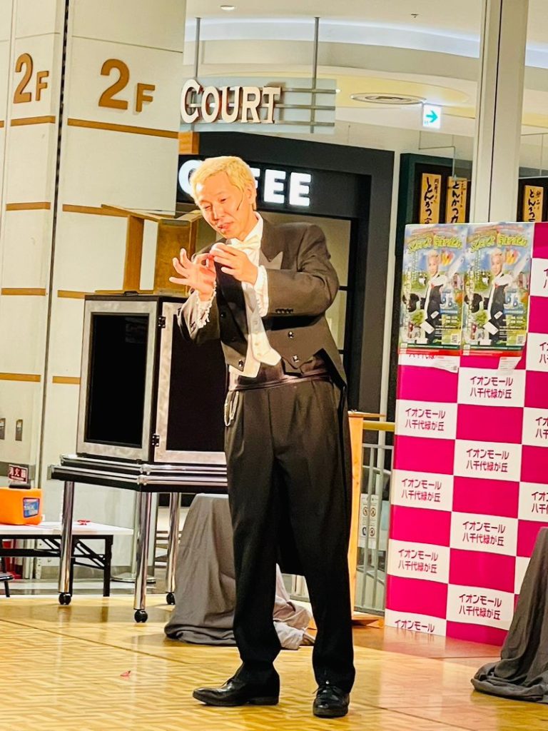 当日、5/31(日)に八千代市市民会館大ホールで上演のたかお晃市マジックショー「マジックシアター」のチケットを販売します。