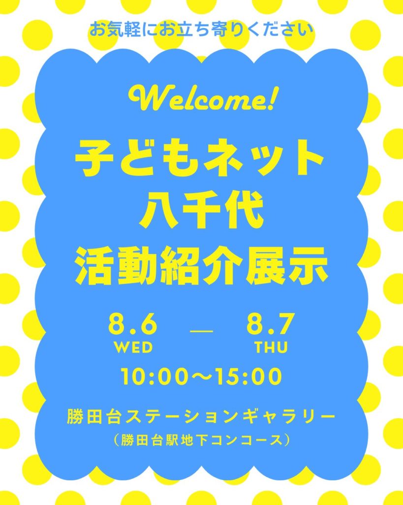 つながる 勝田台ステーションギャラリーで活動紹介展示をします! 2025年8月6日(水)〜7日(木) 勝田台駅地下コンコース内「勝田台ステーションギャラリー」にて \子どもネット八千代って⁉️/展示会やります‼️ 子どもネット八千代は、前身の八千代おやこ劇場から35年、三世代で楽しみながら、八千代市近郊の子どもたちに生の舞台を... 2025年8月2日